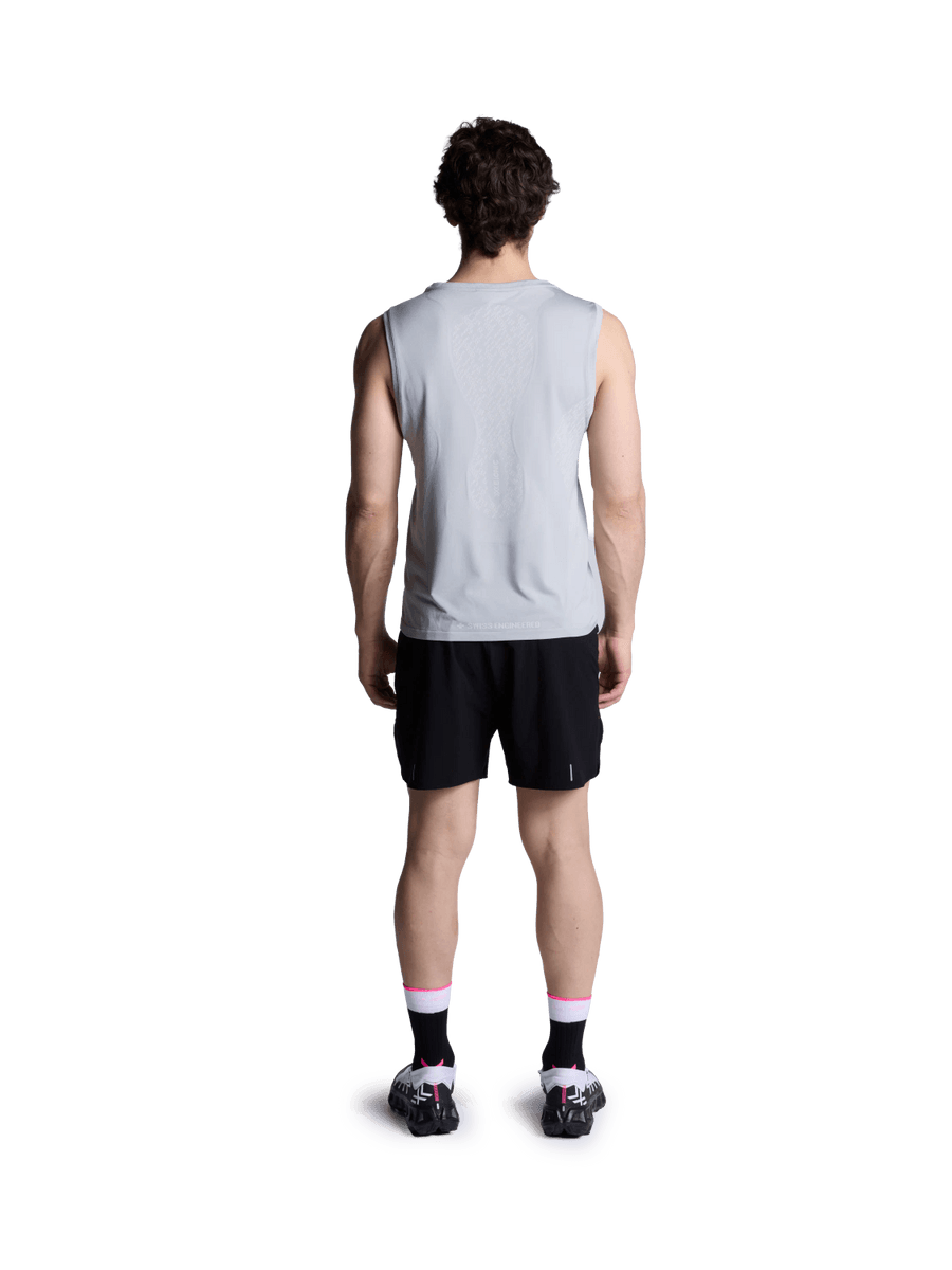 Swiss engineering meets tank top styling. Smart composition yarn and essential ventilation zones keep you cool and focused. A looser fit and refined seams help maintain peak performance. Race past your limits.