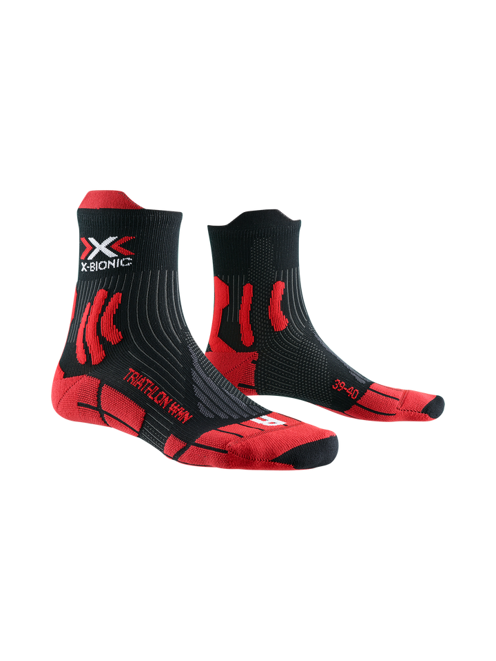 Dominate every triathlon step with confidence. The X-BIONIC® DRAGONFLY 5G TRIATHLON WMN sock efficiently manages sweat through the Air-Conditioning Channel® for lasting dryness. The Lambertz-Nicholson Achilles Tendon Protector cushions to prevent strain, while the Suppronation® bandage stabilizes your foot against overpronation and supination. All-year tailored, it supports endurance athletes to push farther, faster, and stronger with unmatched stability and comfort.