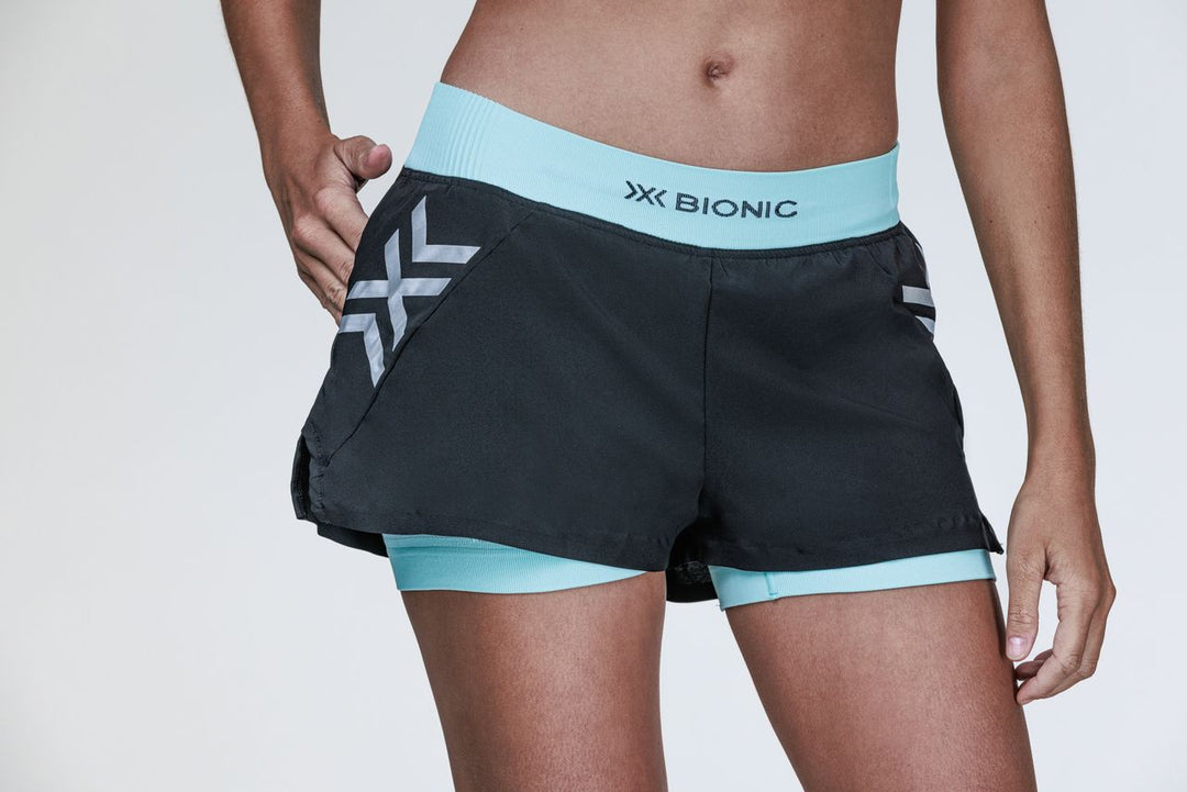 Conquer challenging runs with precise temperature regulation. The X-BIONIC® TWYCE RACE 2in1 SHORTS WMN use TWYCE Cool Zone and 3D Bionic Sphere® System with ThermoSyphon® to optimize sweat management and cooling. Neural-Response-Bandage technology delivers targeted muscle compression for stability and reactivity, keeping you cooler, more confident, and running farther all year round.