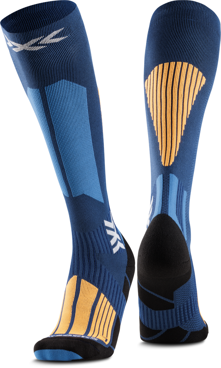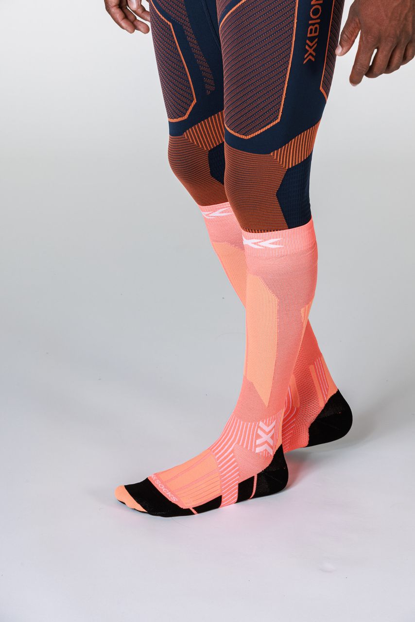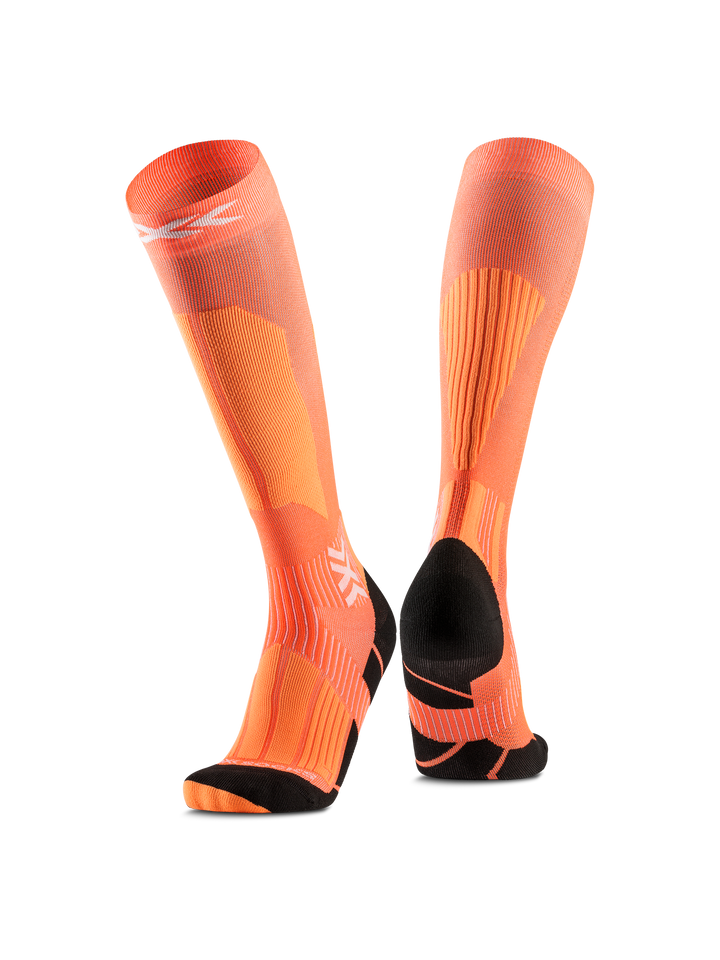 Push your limits with confidence. The X-SOCKS® SKI TOURING PERFORM OTC optimizes stability with Suppronation®-Bandage and protects the Achilles tendon with Lambertz-Nicholson technology. Its Air-Conditioning Channel® enables permanent air movement removing sweat moisture, keeping feet cool and dry, so you perform stronger and longer on every winter ascent.