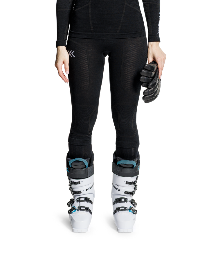 Conquer cold with natural power. The X-BIONIC® SYMBIO MERINO PANTS 3/4 WMN deliver expert-level thermoregulation and muscle support for winter sports. Featuring the patented 3D Bionic Sphere® System with ThermoSyphon®, ISO-Pads for targeted insulation, and breathable Merino wool, these pants keep you dry, warm, and agile for longer performance in cold conditions.